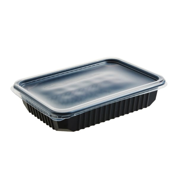 Caserolă microunde PP de 1000 cc, cu capac inclus. Termorezistentă, ideală pentru reîncălzirea sigură a alimentelor. Asigură închidere etanșă. Set 50 buc.